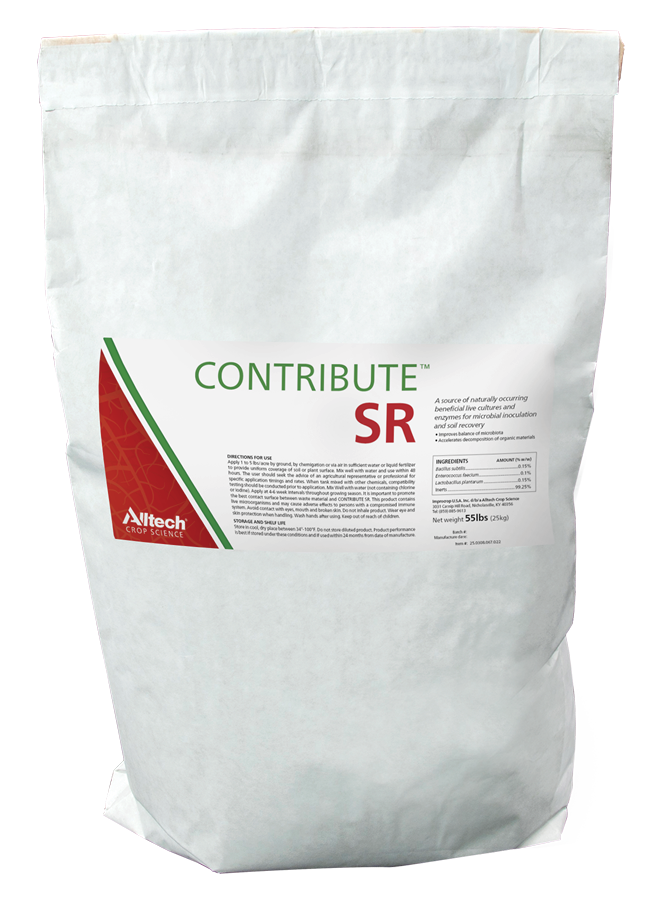 Promote soil restoration. CONTRIBUTE SR is a microbial inoculant consisting of beneficial live cultures specially selected to optimize the soil microbiome, improve soil structure and bolster root development and plant vigor.