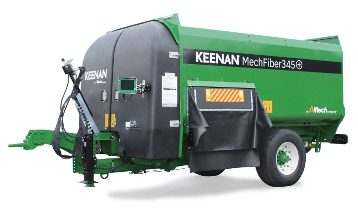 Bei dem MechFiber 345+ wurde die Grundfläche des MechFiber320+ beibehalten. Er besitzt eine größere Mischkammer und eine bis zu 35 % höhere Mischkapazität. Somit erlaubt dieser Mischwagen eine optimale Verarbeitung aller Arten von Futterkomponenten. Dieser Mischwagen ist sehr beliebt bei Betrieben mit bis zu 100 Kühen oder 200 Mastrindern. Als erstes Modell dieser Baureihe verfügt der MechFiber345+ über eine Ölwanne, die für eine automatische Schmierung der Ketten sorgt. Dies unterstützt einfache Wartungsarbeiten und eine lange Nutzungsdauer. Für den MechFiber345+ gibt es einen Variable Deichsel die an die meisten Höhen angepasst werden kann. Mit dem BallenProfi lassen sich bei diesen Maschinen Rund- und Quaderballen einfach in die Mischung mit aufnehmen.