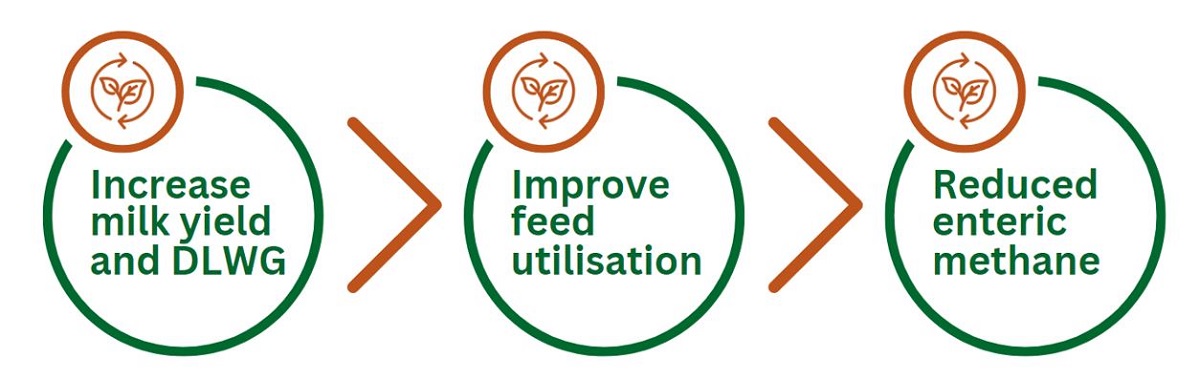 Dry matter intake and digestion efficiency are two major impactors on net methane (CH4) footprint. To recap, that’s how much methane is produced for every litre of milk or kilogram of meat.