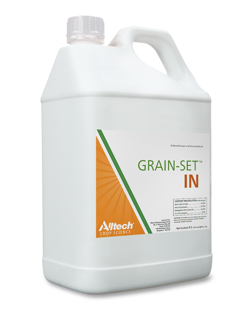 Applied nutrition for optimized production. A unique biochemical blend of micronutrients and fermentation products, GRAIN-SET IN is specially formulated for cereal, grain, forage and oil crop production in India.