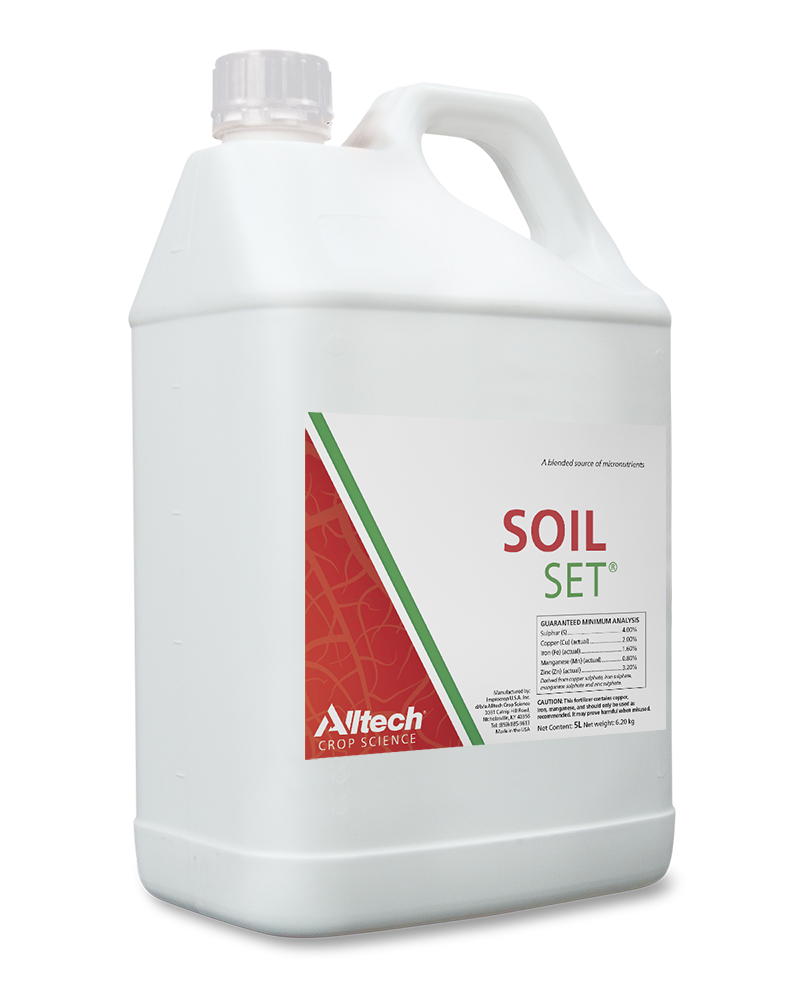 Support your farm's most valuable asset: the soil. Resulting from advanced research studying specific bacterial metabolites and enzymes, Soil-Set helps plants establish and maintain a strong foothold and helps growers rejuvenate the quality and productivity of their soils, season after season.