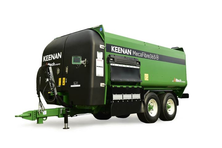 Le KEENAN MécaFibre 365+ fait partie des machines à grand volume, pouvant alimenter de 100 à 140 vaches laitières par chargement ou 200 à 280 bovins de finition. Elle dispose d’un système d’entraînement à bain d’huile permettant une lubrification automatique des chaînes pour un entretien facilité et un graissage centralisé de tous les roulements avant à partir d’un seul emplacement, ce qui améliore la durée de vie de la machine.
