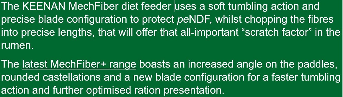 It disregards anything to do with fibre structure and rather focusses on the goal of getting intakes in quicker, so that cows have more time to lie down and ruminate.