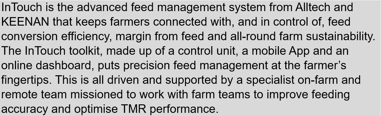 *Feed conversion efficiency is the ratio of kg feed to kg of milk output in lactating dairy cows. InTouch targets dairy farmers to achieve 1.5kg of milk for every 1kg of dry matter of feed
