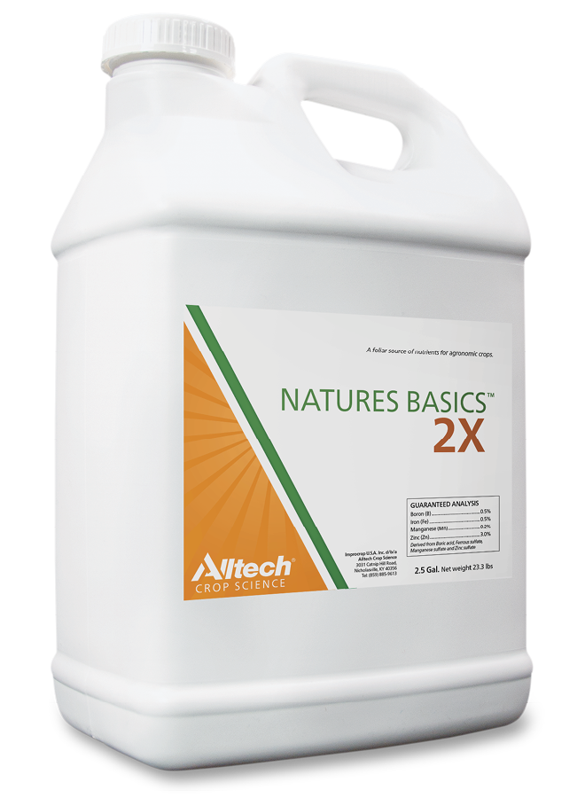 Applied nutrition for optimized production Specially formulated for forage and oilseed crops, NATURE’S BASICS 2X is a blend of micronutrients and fermentation metabolites that are applied during flowering and fruit development to supply the plant with the nutrition required for better growth, fruit set and seed development.